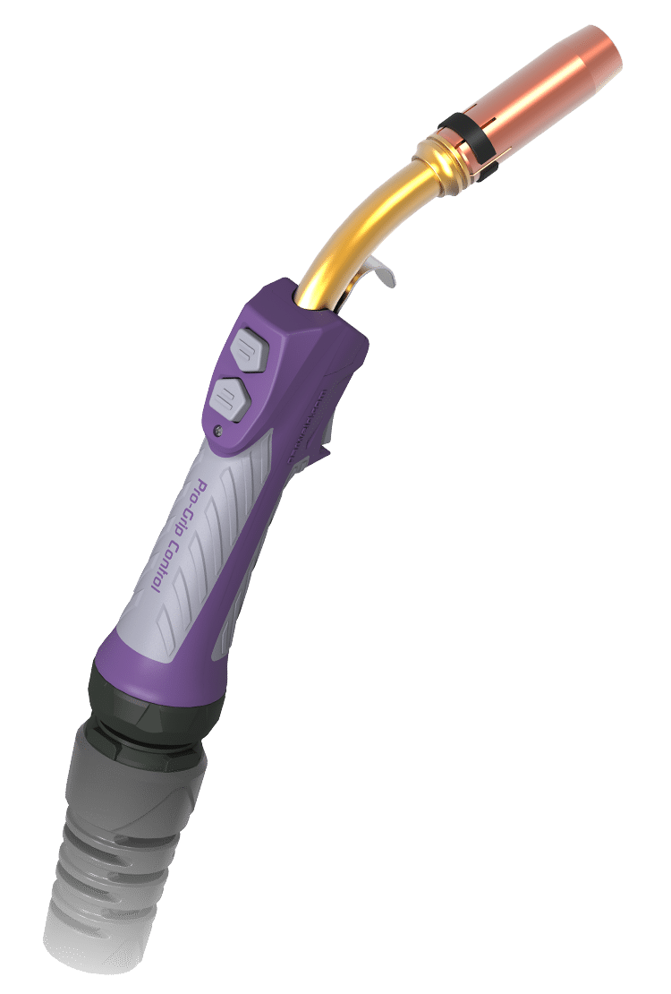The PRO-Grip Control™ Handle allows the user to control welding machine parameters directly from the torch. Control modules are available in 2 and 4 button versions, and can be assembled to the handle in seconds.