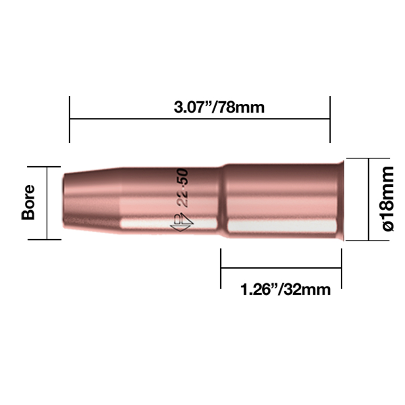 3.07" (78mm) Full Length, 1.26" (32mm) Connection Length, 18mm Diameter