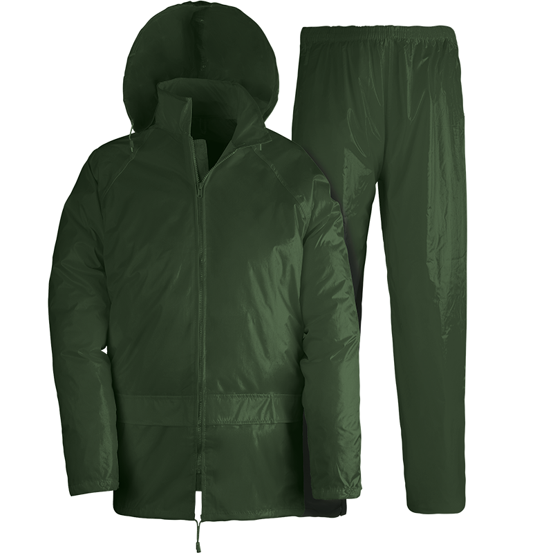 Kapriol Raincoat and Trouser Waterproof Set. Long Sleeve Heat-Sealing PVC and Polyester Coat with matching Waterproof Trousers. Comes with Closure featuring Automatic Buttons and Retractable Hood.
