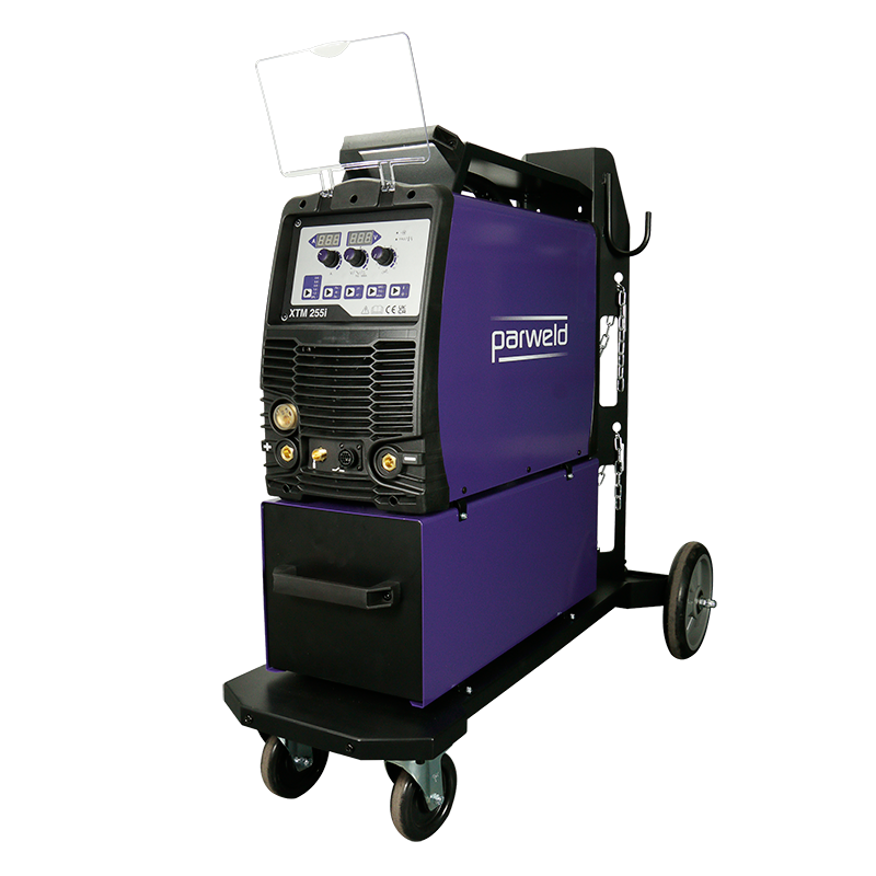 The XTM 255i single phase MIG Inverter is a dual voltage high performance multi-process power source capable of MIG, Lift TIG, and MMA welding. The LED digital displays show all parameters and data in real time. The machine has built in synergic control, so welding parameters will adjust automatically when the current is changed, making it easy to operate. The XTM 255i Power Source Welding Machine comes ready assembled to the TR008 Trolley, which is equipped witha conveniant practical drawer attachment.