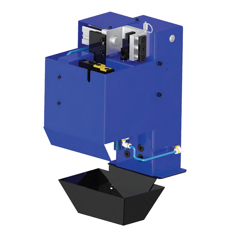 1) The torch nozzle is clamped and the cutter cleans out spatter from inside the nozzle.