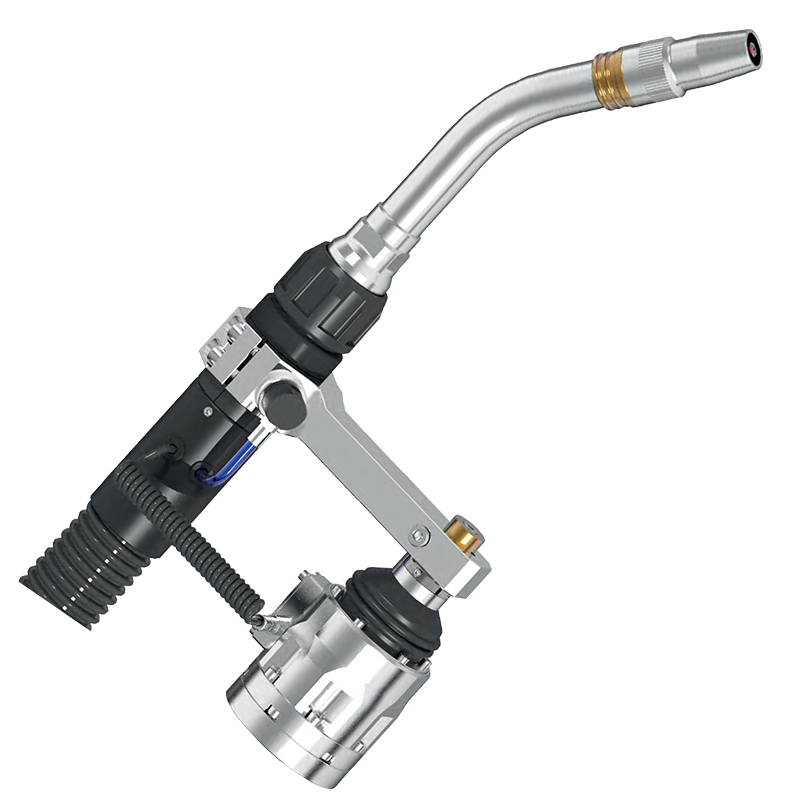 Available in select markets, the PRW602 is a water-cooled push-pull robotic torch specifically optimised for aluminum welding. It features an integrated pull motor assembly and a collision sensor to ensure consistent wire feed and torch protection during high-amperage (600A) operations.