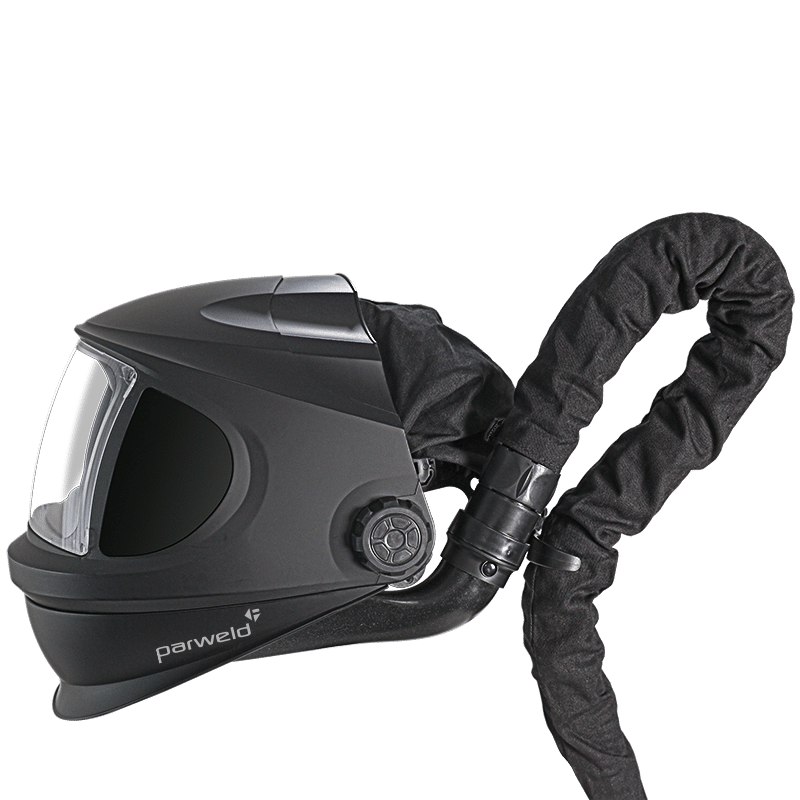 Elevate Your Air Quality To The Next Level with the Parweld XR943A PAPR (Powered Air Purifying Respirator). Designed for particulate environments, offering a flip-up welding and grinding helmet, a simple status display, and a smooth, ultra-quiet brushless motor with two-speed airflow control. It features audible and vibration warnings, a comfort belt with detachable shoulder straps, and a removable lithium-ion battery with a 10-hour runtime. The unit is lightweight at less than 1.1 kg and includes easy-to-operate controls. It comes supplied with an A1 P3 main filter, an activated carbon pre-filter, and a metal spark arrester for comprehensive filtration. This system is TH3P certified in accordance with European standard EN12941: 1998/A 1:2004/A2:2008 TH3P.